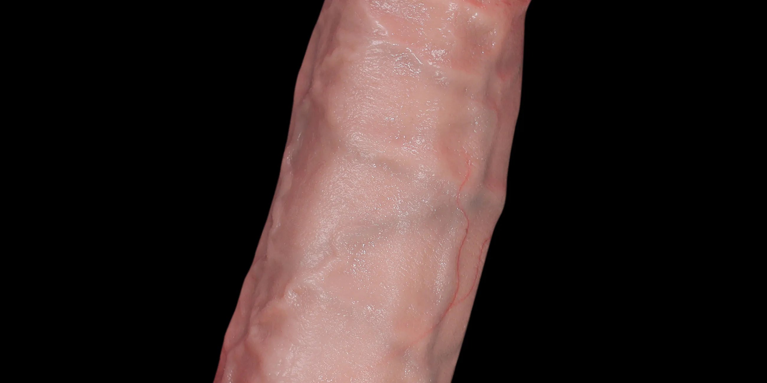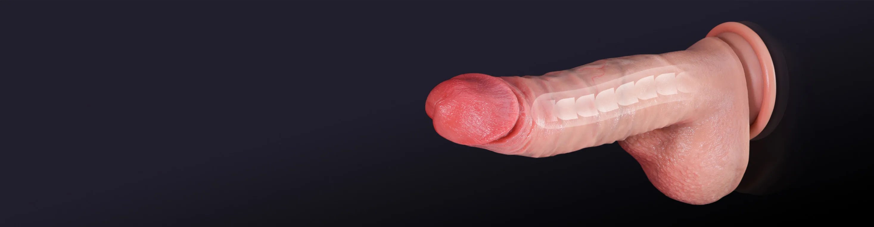 Die Eichel ist präzise modelliert, mit einer natürlichen Schwellung und einem sanften, blassen Farbton, der eine authentische anatomische Struktur widerspiegelt.
