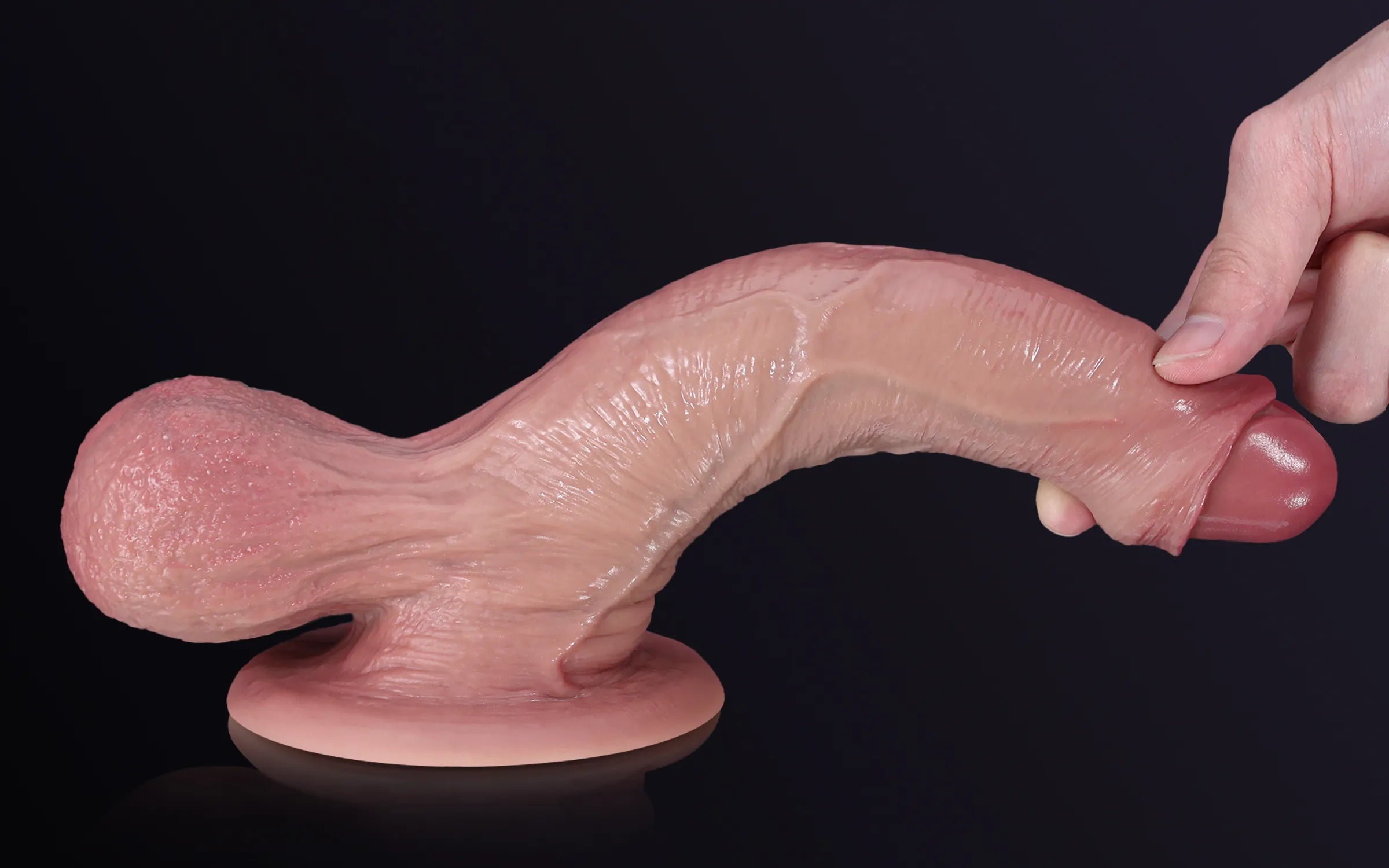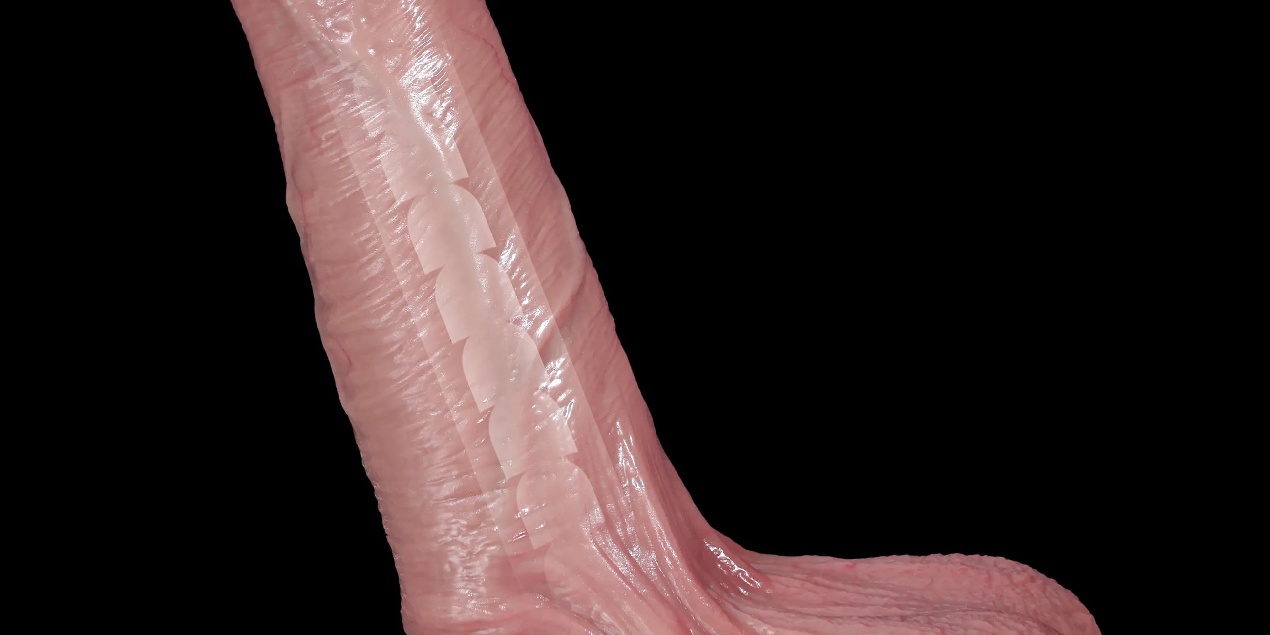 Die Eichel ist natürlich geschwollen und in einem zarten, blassen Ton gehalten, um eine anatomische Realitätsnähe zu gewährleisten.