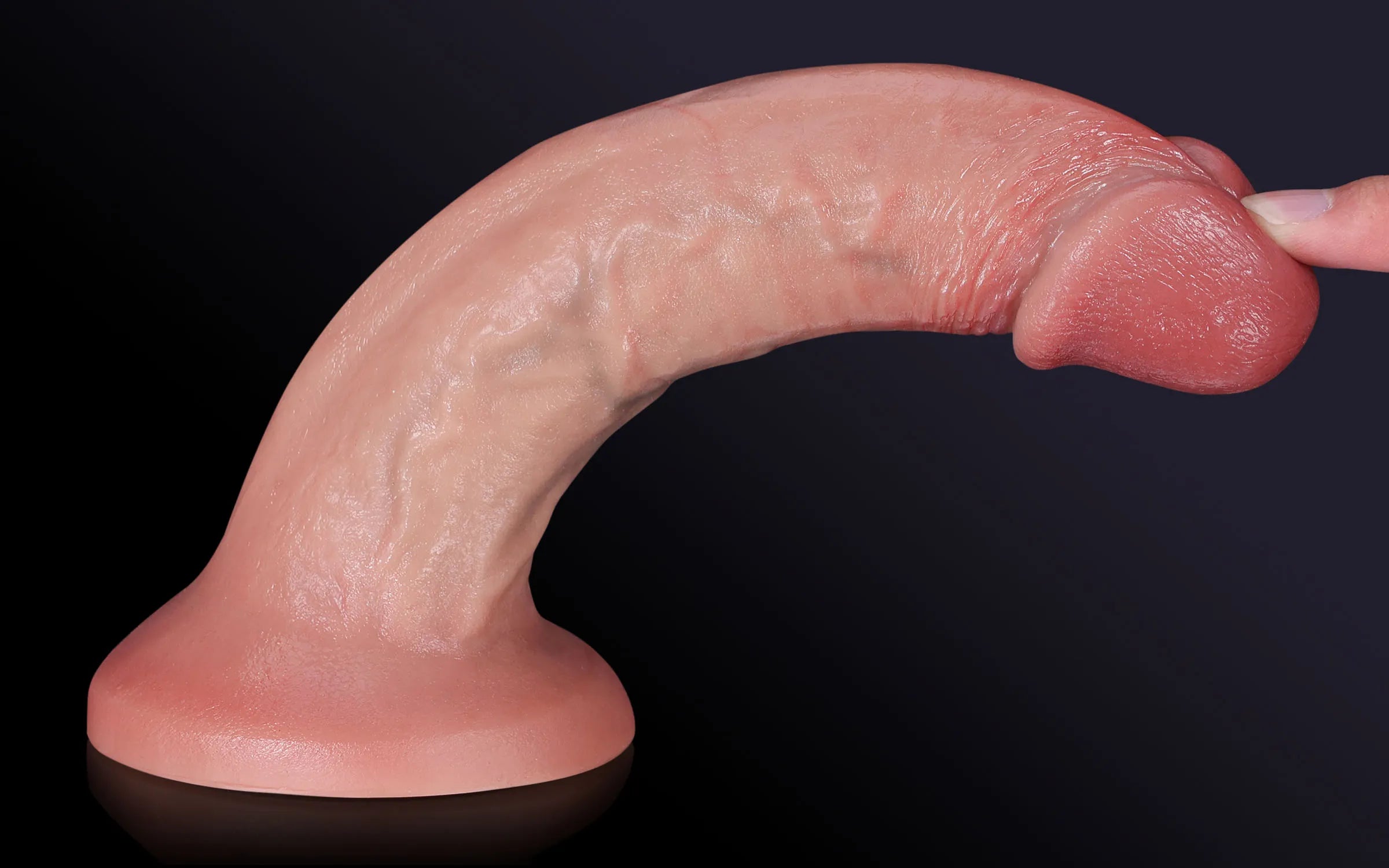Die Eichel ist natürlich geschwollen und in einem zarten, blassen Ton gehalten, um eine anatomische Realitätsnähe zu gewährleisten.