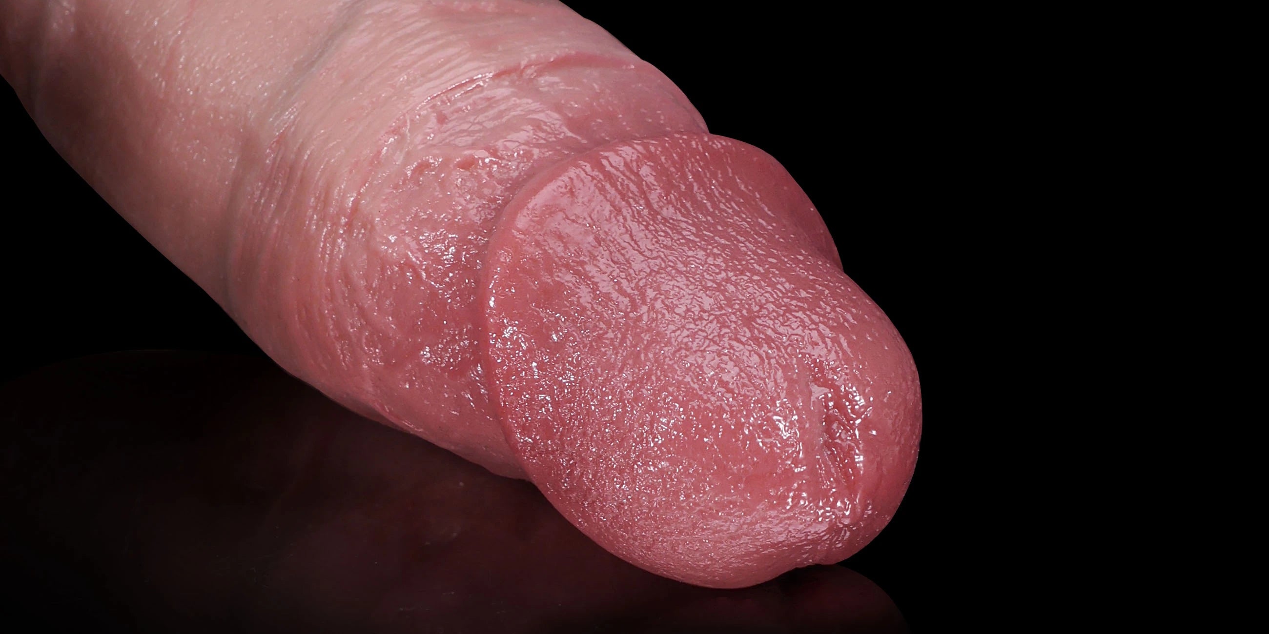 Eine modellierte, natürlich geschwollene Eichel mit einem sanften, rosigen Farbton für eine realistische anatomische Darstellung.
