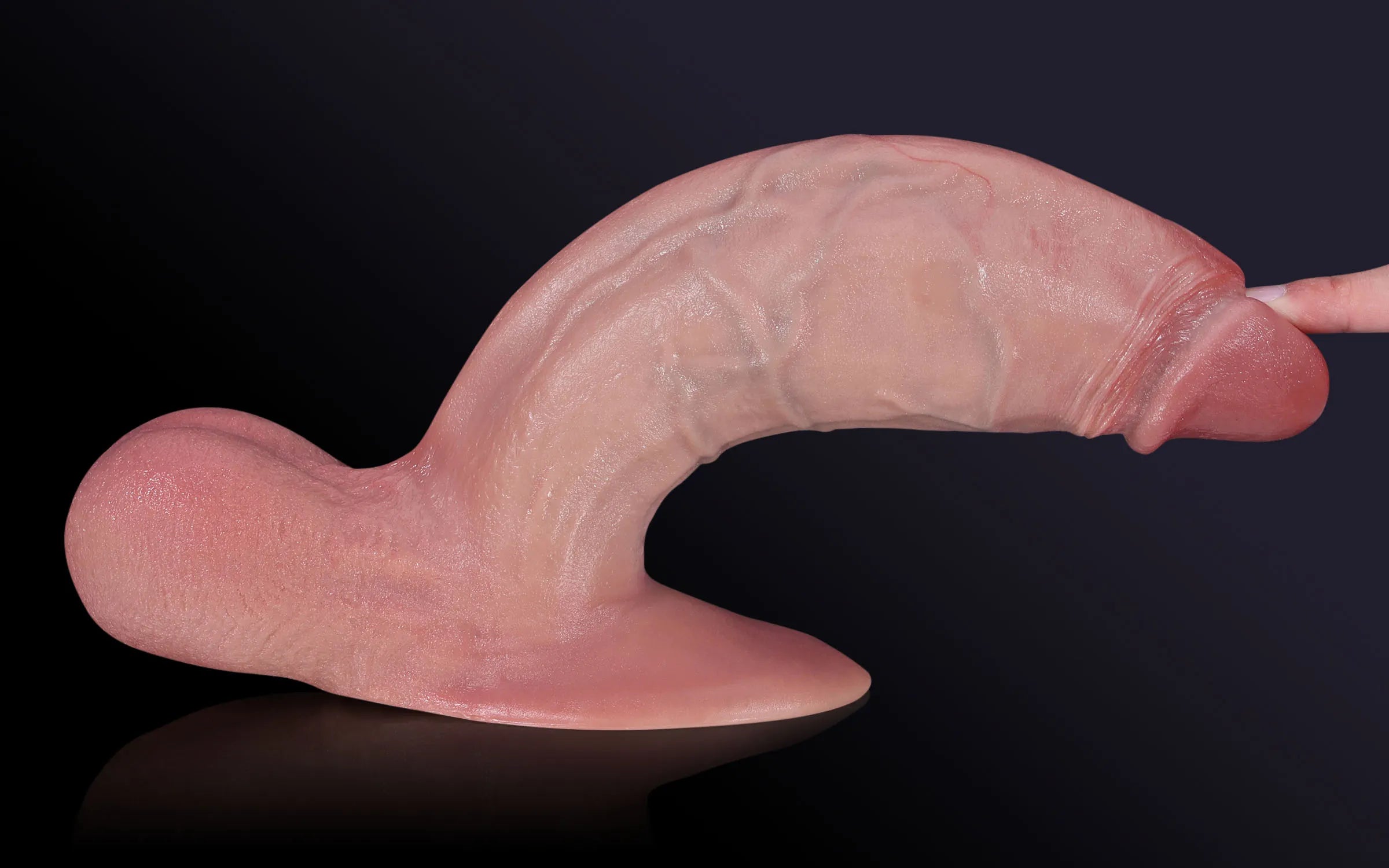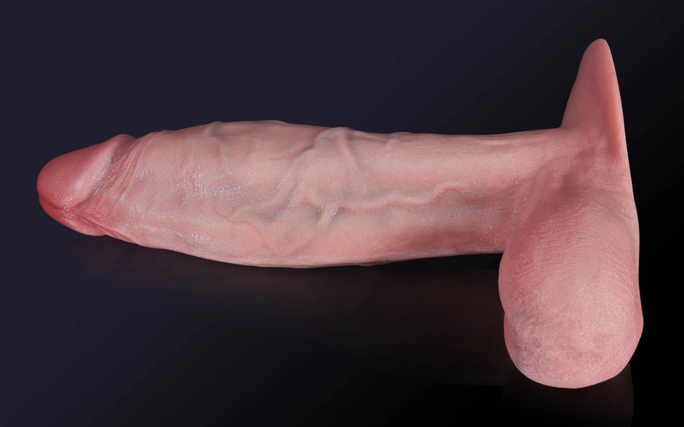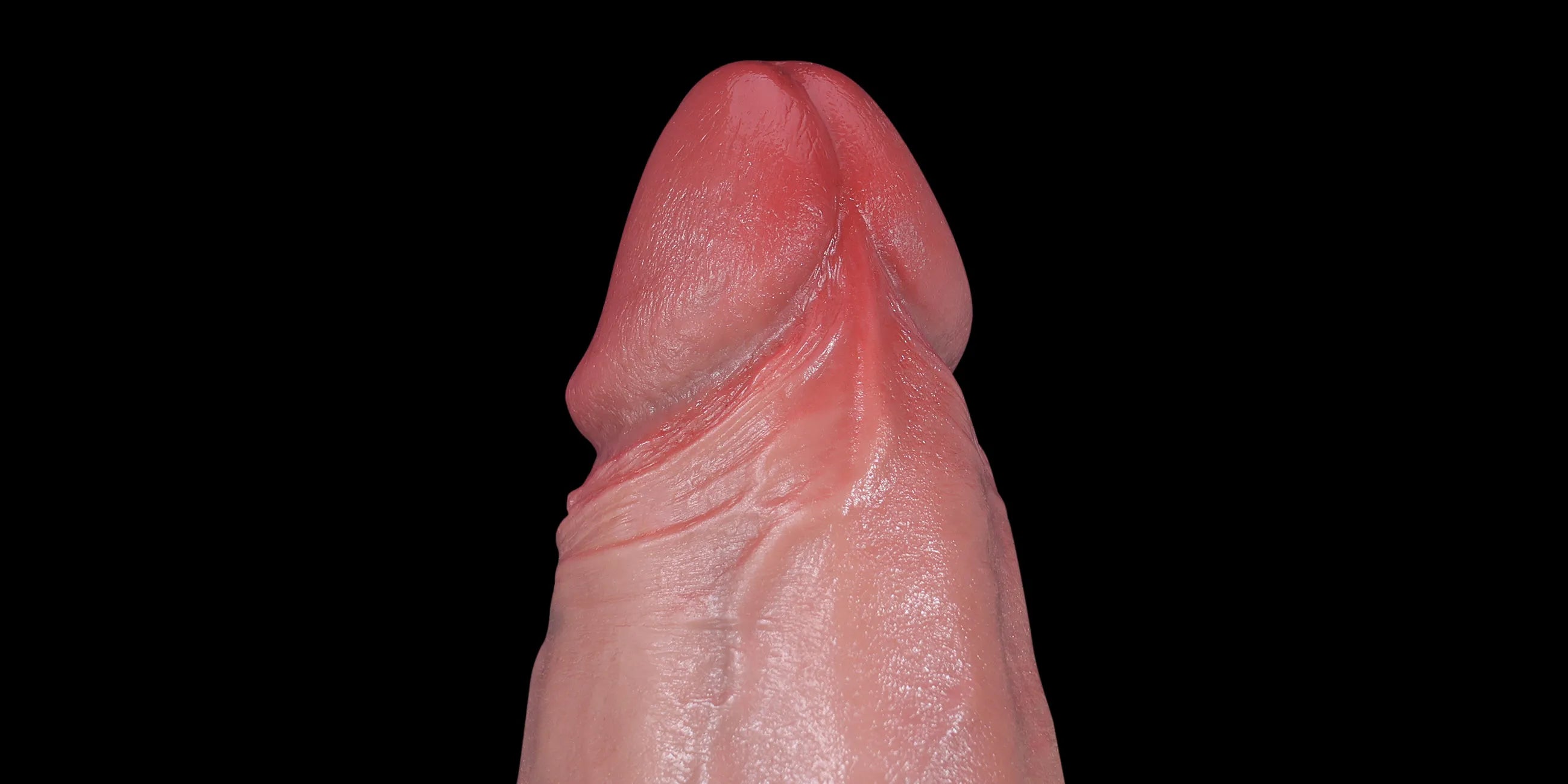Die Eichel ist natürlich geschwollen und in einem zarten, blassen Ton gehalten, um eine anatomische Realitätsnähe zu gewährleisten.