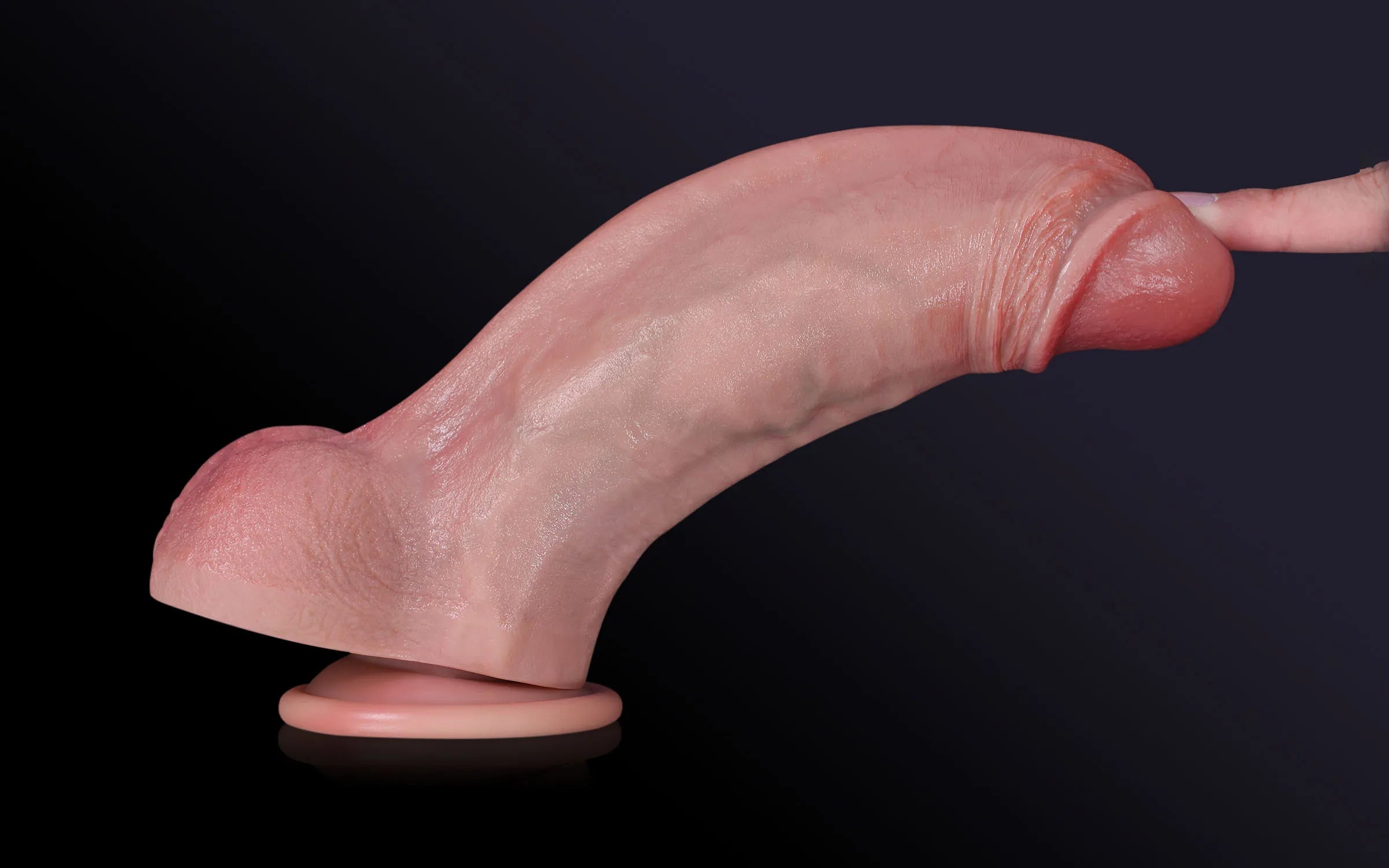 Die Eichel ist natürlich geschwollen und in einem zarten, blassen Ton gehalten, um eine anatomische Realitätsnähe zu gewährleisten.